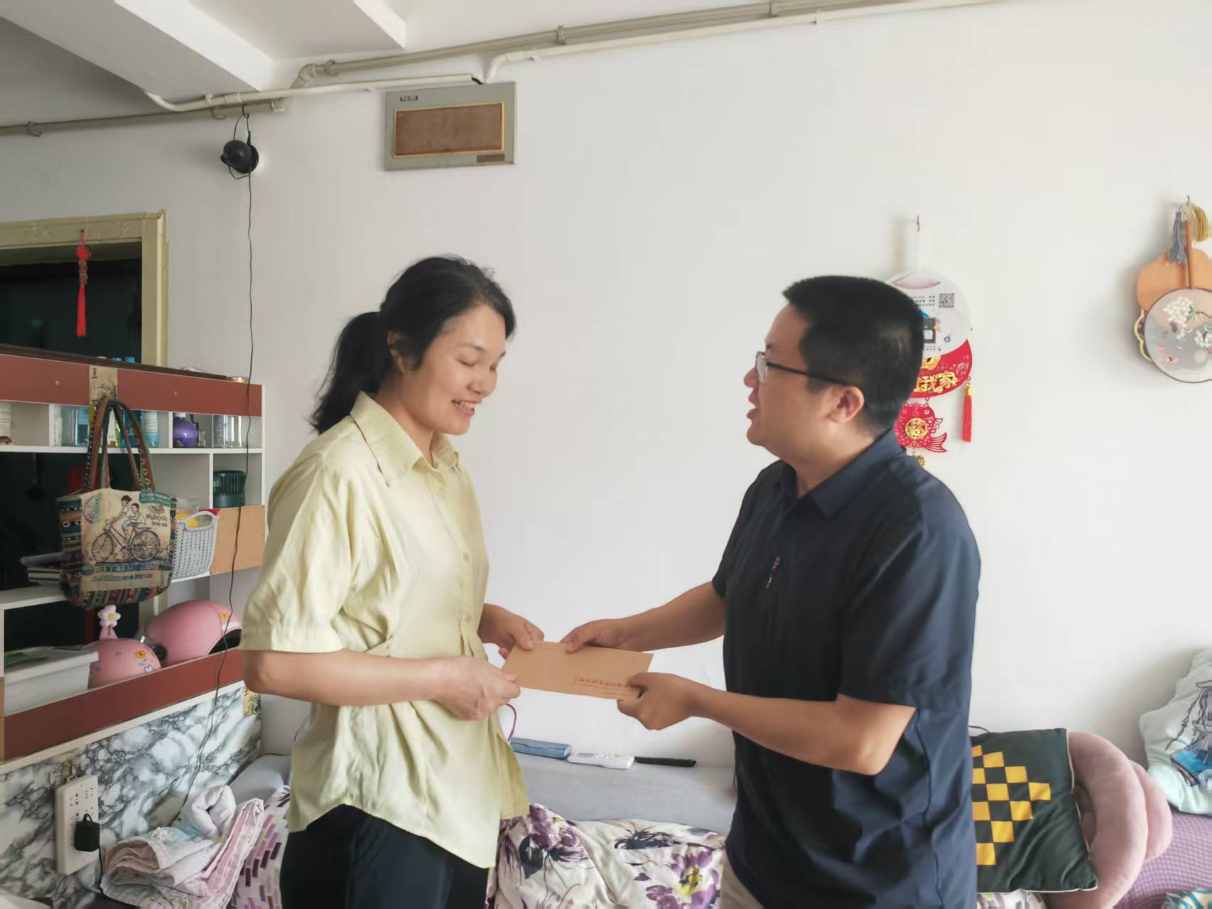 通过深入细致的走访,一户困难学生家庭引起了居民区党总支的关注。这位学生父亲因病去世,全靠母亲工作收入维持家庭开支,生活比较困难。得知这一情况后,东场居民区党总支立即行动起来,迅速联系党建共建单位浦东财政专项资金审核中心,延续“爱心助学”的专项公益活动。“爱心助学”现场处处洋溢着温暖,资助单位代表向困难学生母亲赠予助学金,并与家长亲切交流,鼓励家属要克服困难,作孩子坚强后盾,全力培养学生,早日成长为栋梁之材。