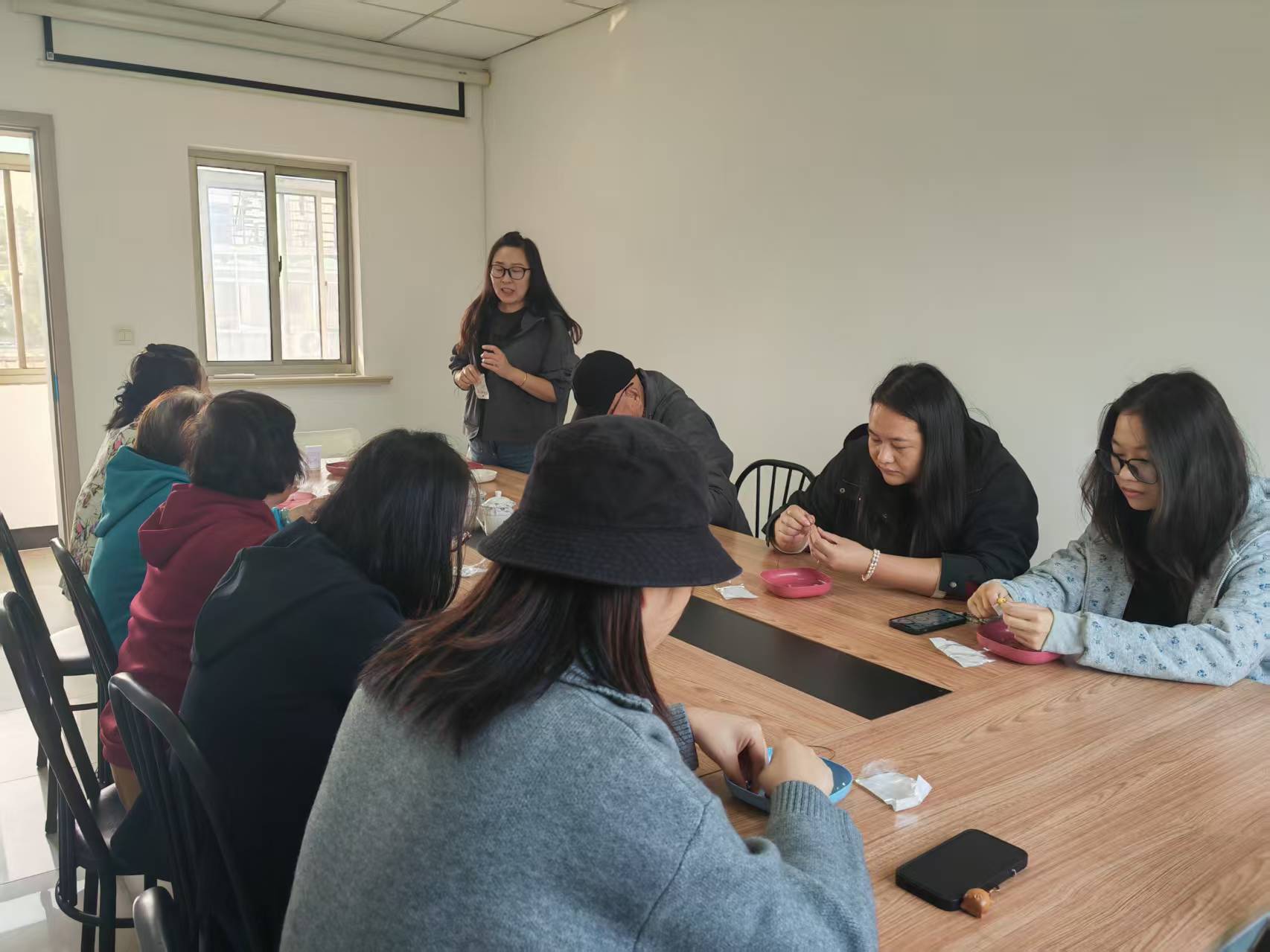 十八籽手环,不是普通的饰品。它蕴含着深厚的传统文化,每一颗珠子都有独特的寓意,象征着平安、健康、顺遂……活动现场,社区居民们齐聚一堂,亲手制作十八籽手串。手工制作老师首先为大家详细讲解十八籽手环的文化背景、每颗珠子的含义,还手把手教你制作技巧。从挑选珠子到穿线打结,每一个步骤都能让你沉浸式体验手工的魅力每一颗精心挑选的珠子,都承载着美好的寓意。大家全神贯注地穿针引线,将这些珠子串联在一起,仿佛把一份份真挚的祝福也紧密相连。